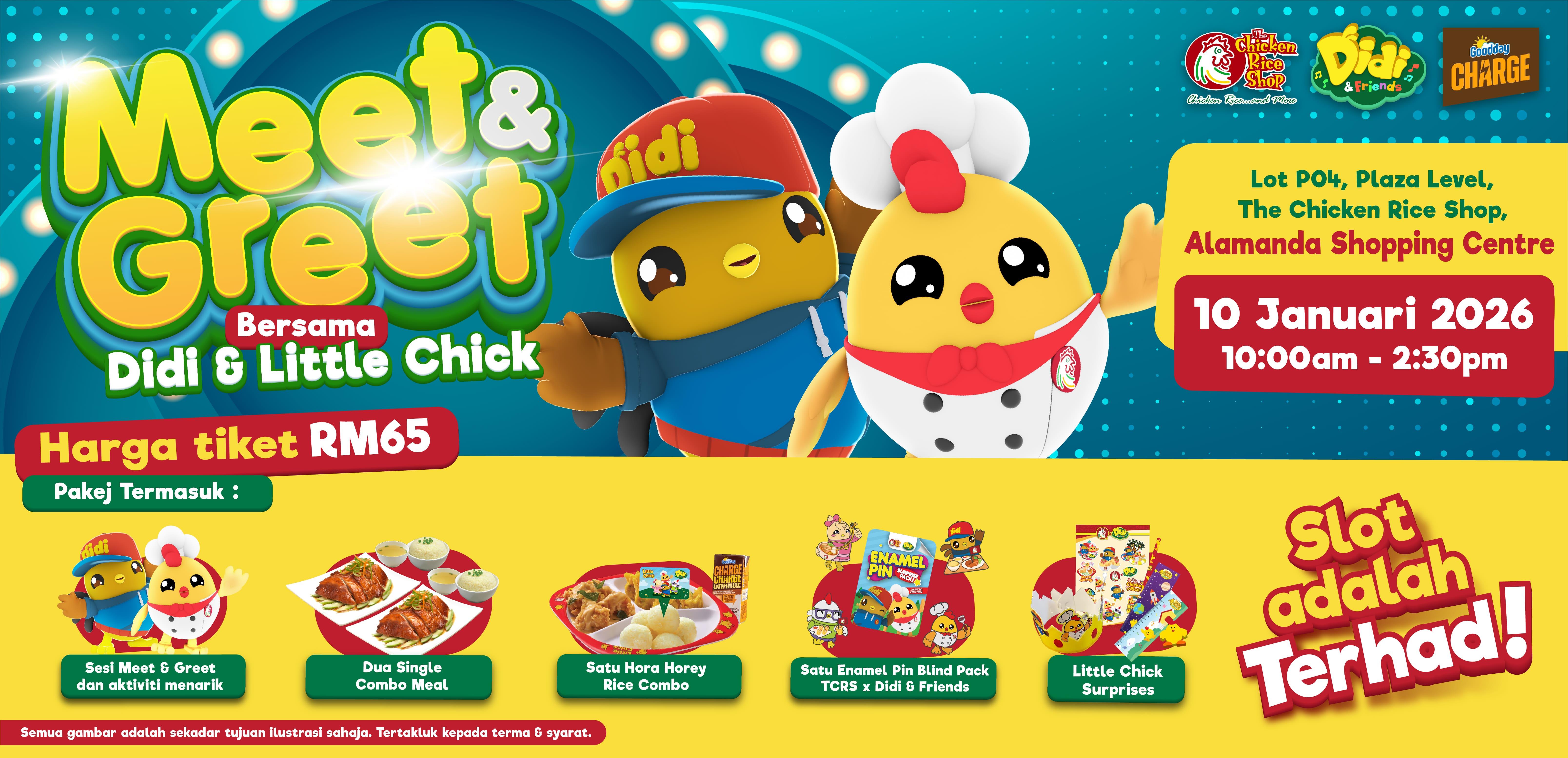 | Meet & Greet Bersama Didi & Little Chick | Sat, 10/11/202510/11/2025 The Chicken Rice Shop (The Gardens) Mid Valley City | |