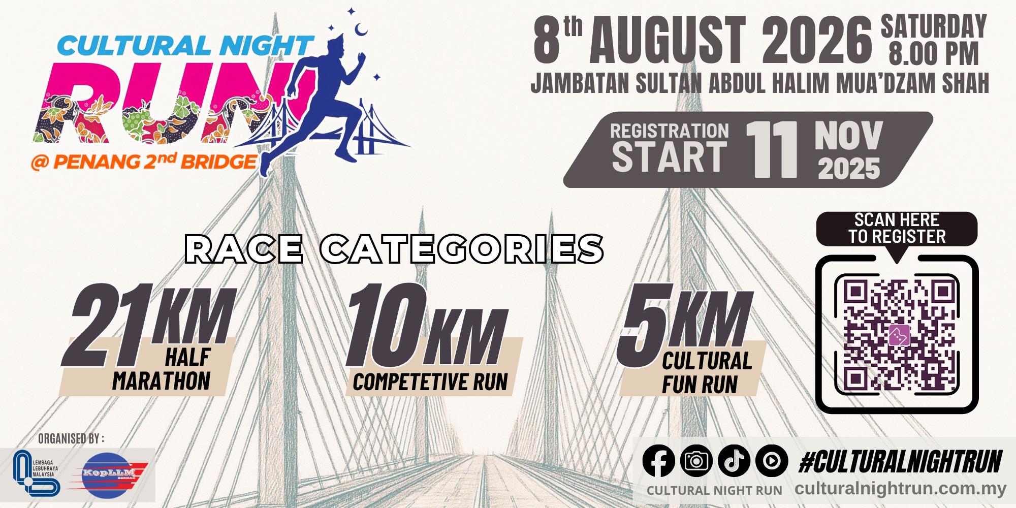 | Cultural Night Run @ 2nd Penang Bridge 2026 | Sat, 8/8/20268/8/2026 Penang Second Bridge | |