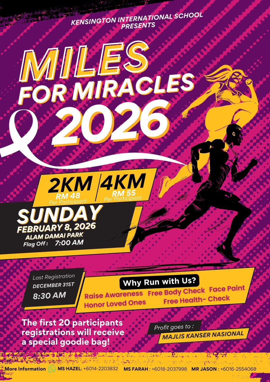 | Miles For Miracles 2026 | Sun, 2/8/20262/8/2026 Alam damai park 59, Jalan Damai Rasa 18, Alam Damai, 56000 Kuala Lumpur | |
