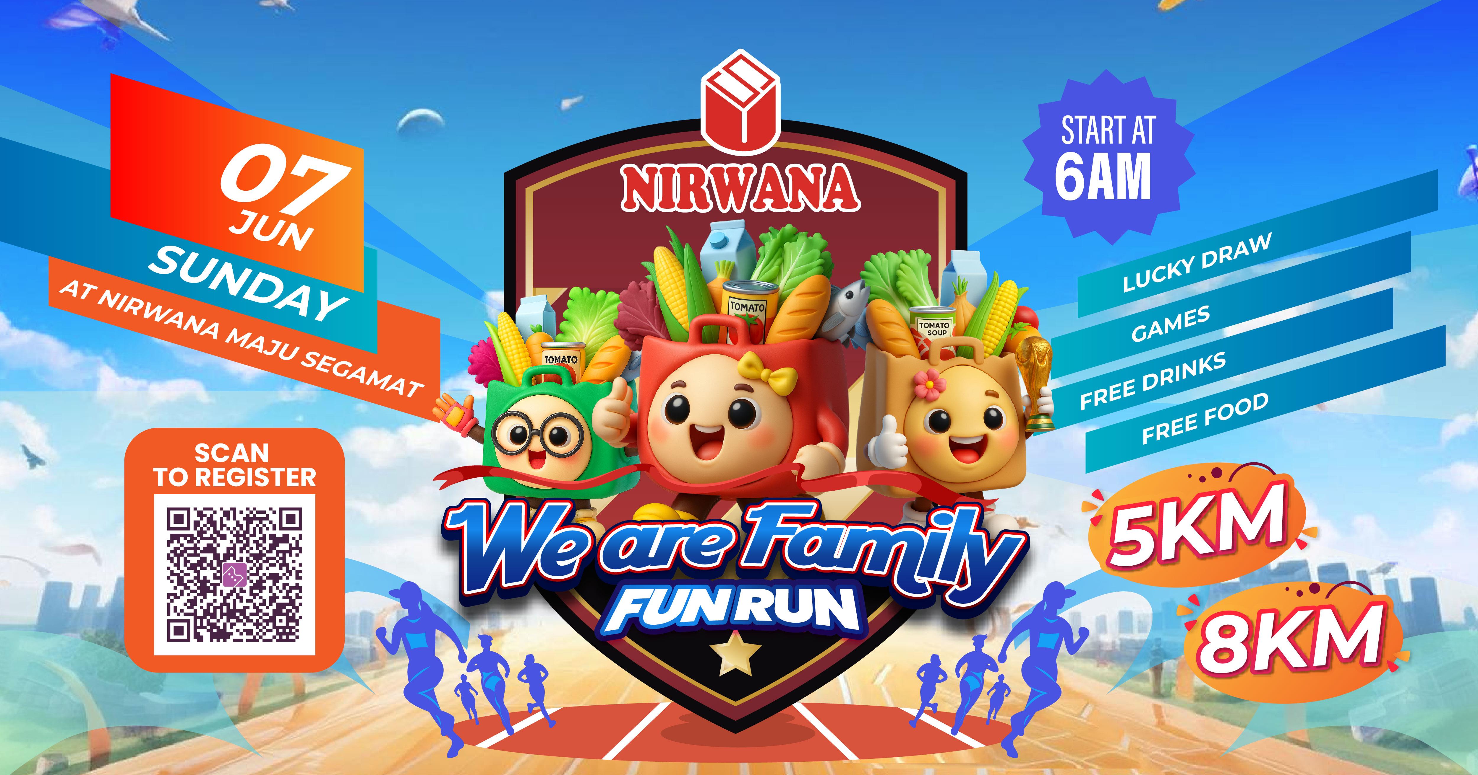 | Nirwana Fun Run 2026 - We are Family ! | Sun, 6/7/20266/7/2026 Nirwana Maju Sdn Bhd (Segamat) Lot 588, (No. 8) Jalan Yusof Abdul Rahman, 85000 Segamat, Johor | |