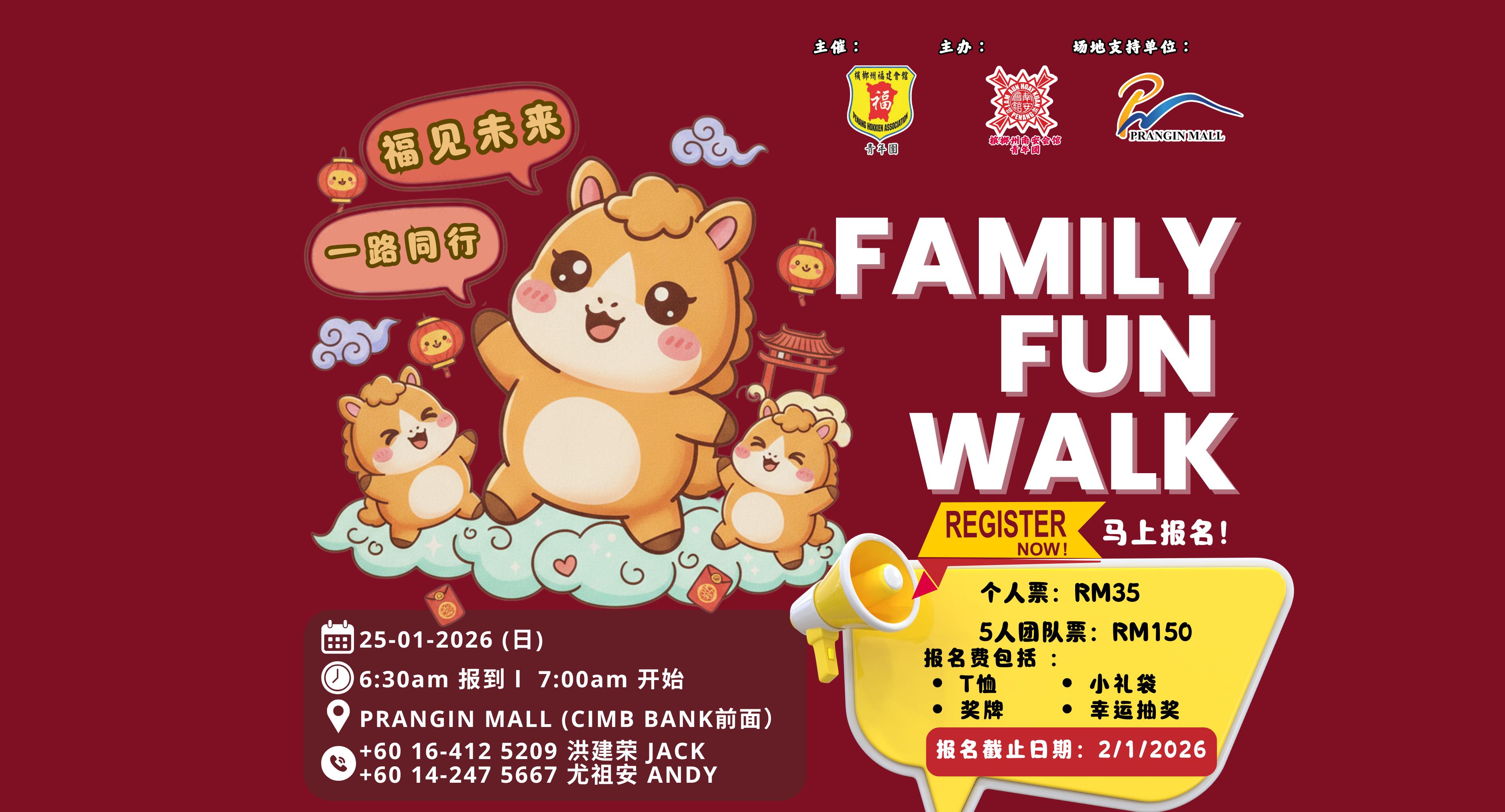 | 福见未来 一路同行 Family Fun Walk | Sun, 1/25/20261/25/2026 Prangin Mall 33, Jalan Dr Lim Chwee Leong, 10100 George Town, Pulau Pinang, Malaysia | |