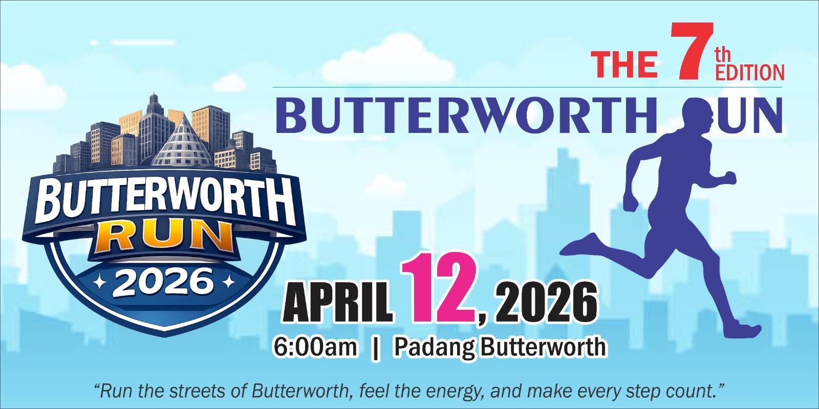 | 7th BUTTERWORTH RUN 2026 | Sun, 4/12/20264/12/2026 Padang Butterworth "Dataran Pemuda Merdeka" Bagan Luar, 12200 Butterworth, Penang, Malaysia | |
