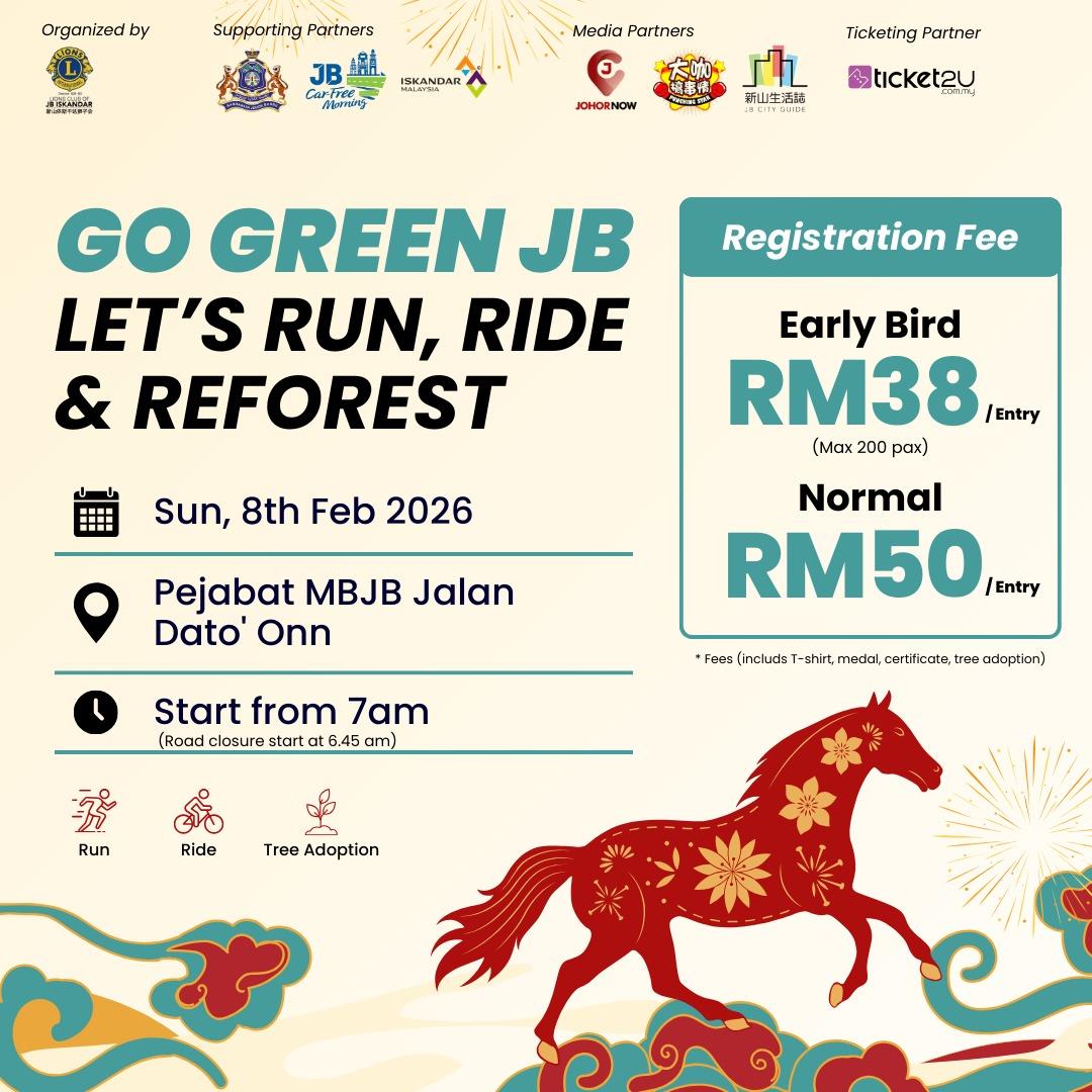 | Go Green JB : Lets Run, Ride & Reforest | Sun, 2/8/20262/8/2026 Pejabat MBJB Peti Surat 232, Jalan Dato Onn, Bandar Johor Bahru | |