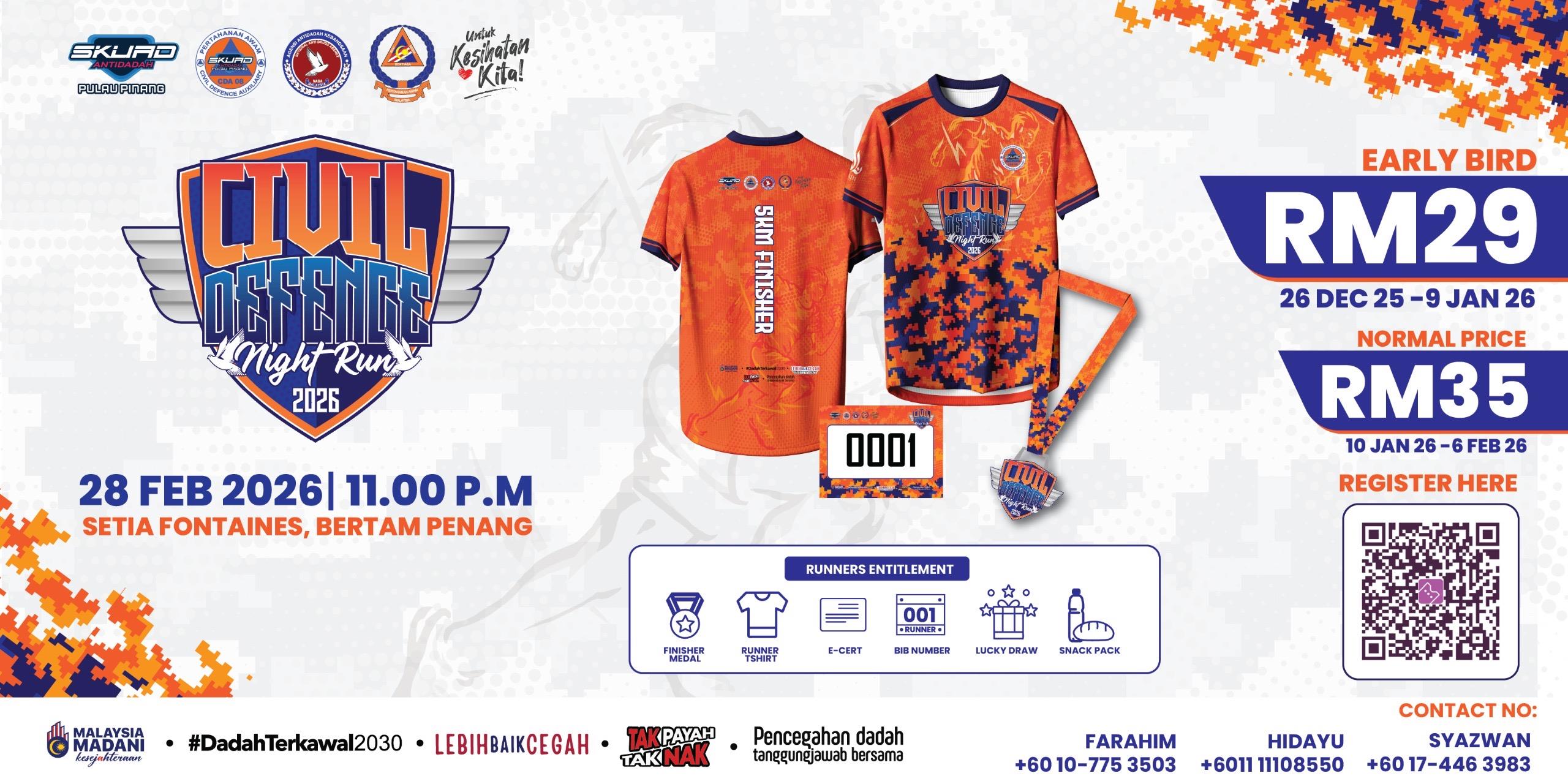 | CIVIL DEFENCE NIGHT RUN 2026 | Sat, 2/28/20262/28/2026 SETIA FONTAINES, BERTAM PENANG | |